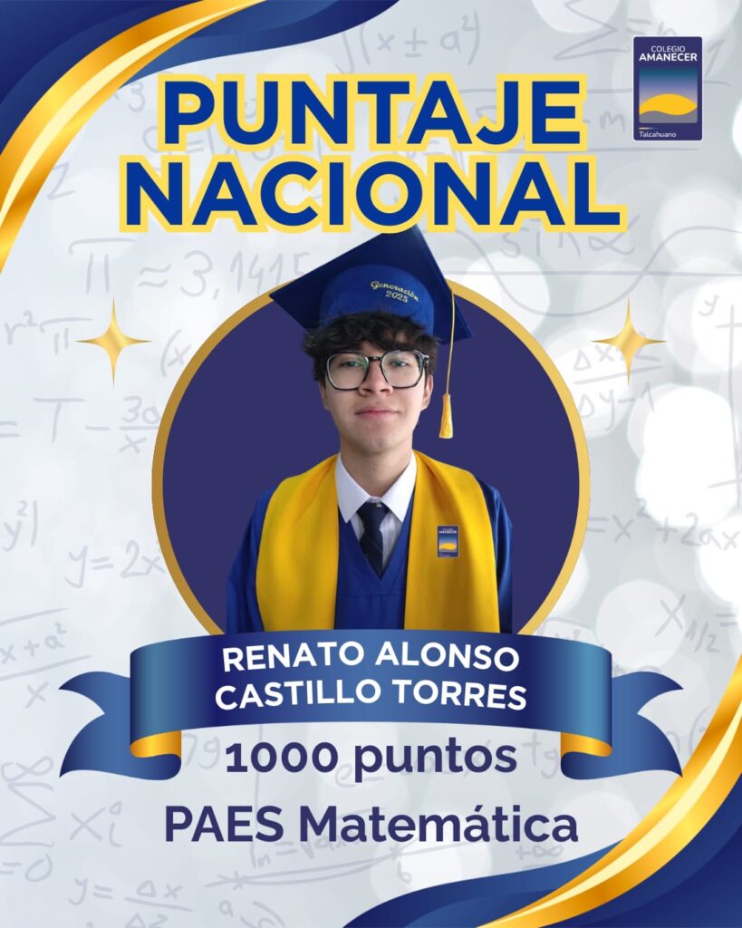 Hoy nuestra comunidad educativa del Colegio Amanecer Talcahuano celebra un logro que nos llena el corazón de alegría y emoción. Nuestro querido estudiante de la Generación 2025, Cuarto Medio A, Renato Alonso Castillo Torres, obtuvo Puntaje Nacional en la PAES de Matemática, convirtiéndose en el primer puntaje nacional en la historia de nuestro colegio. Un hito que marca un antes y […]