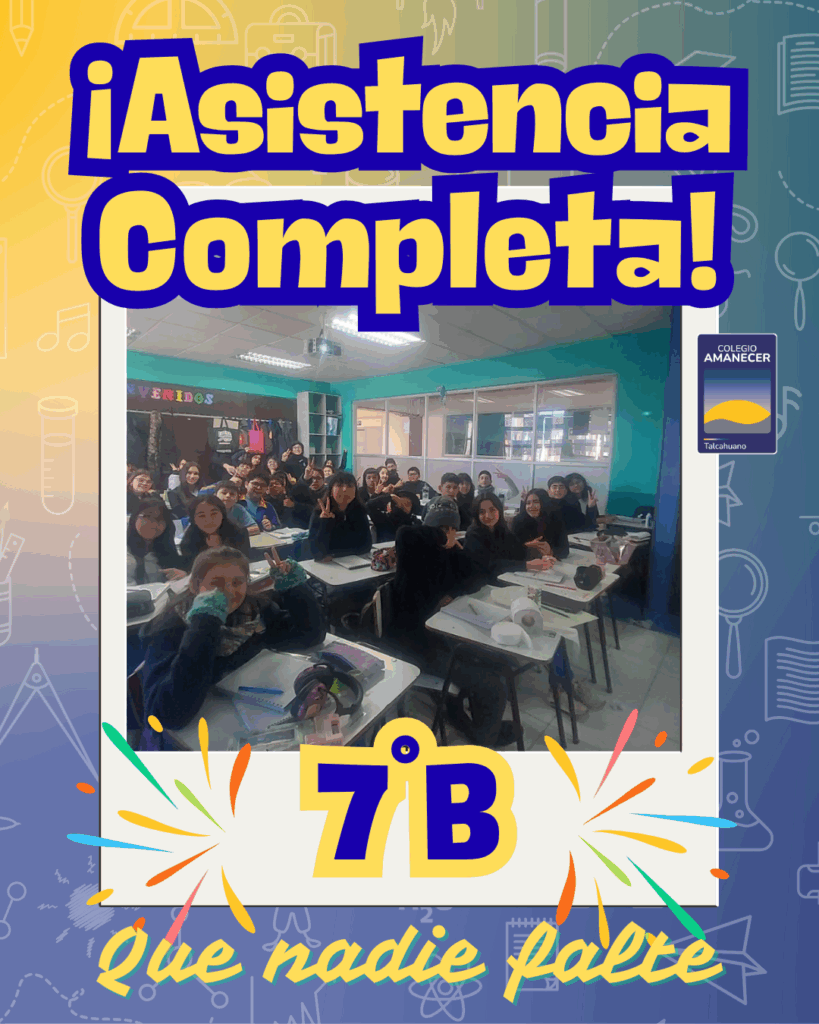 Queremos destacar y felicitar al curso 7º Básico B por lograr una asistencia completa a clases.